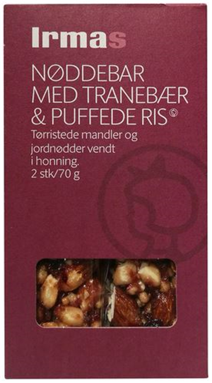 品牌:Irmas Noddebar med Tranebaer & Puffede Ris: Nut Bar with Cranberries and Puffed Rice