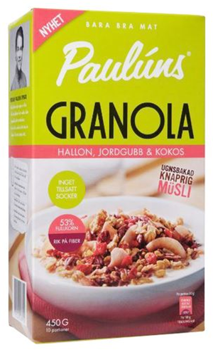 全球新品 > Pauluns Granola Hallon, Jordgubb, And Kokos: Crispy Granola With Raspberries And Strawberries